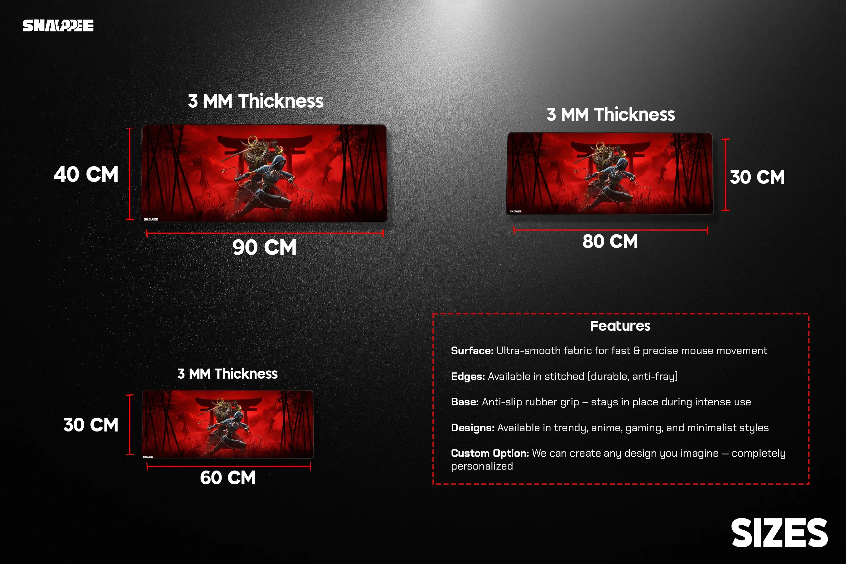 - 80 CM x 33 CM – Balanced and versatile for most setups.