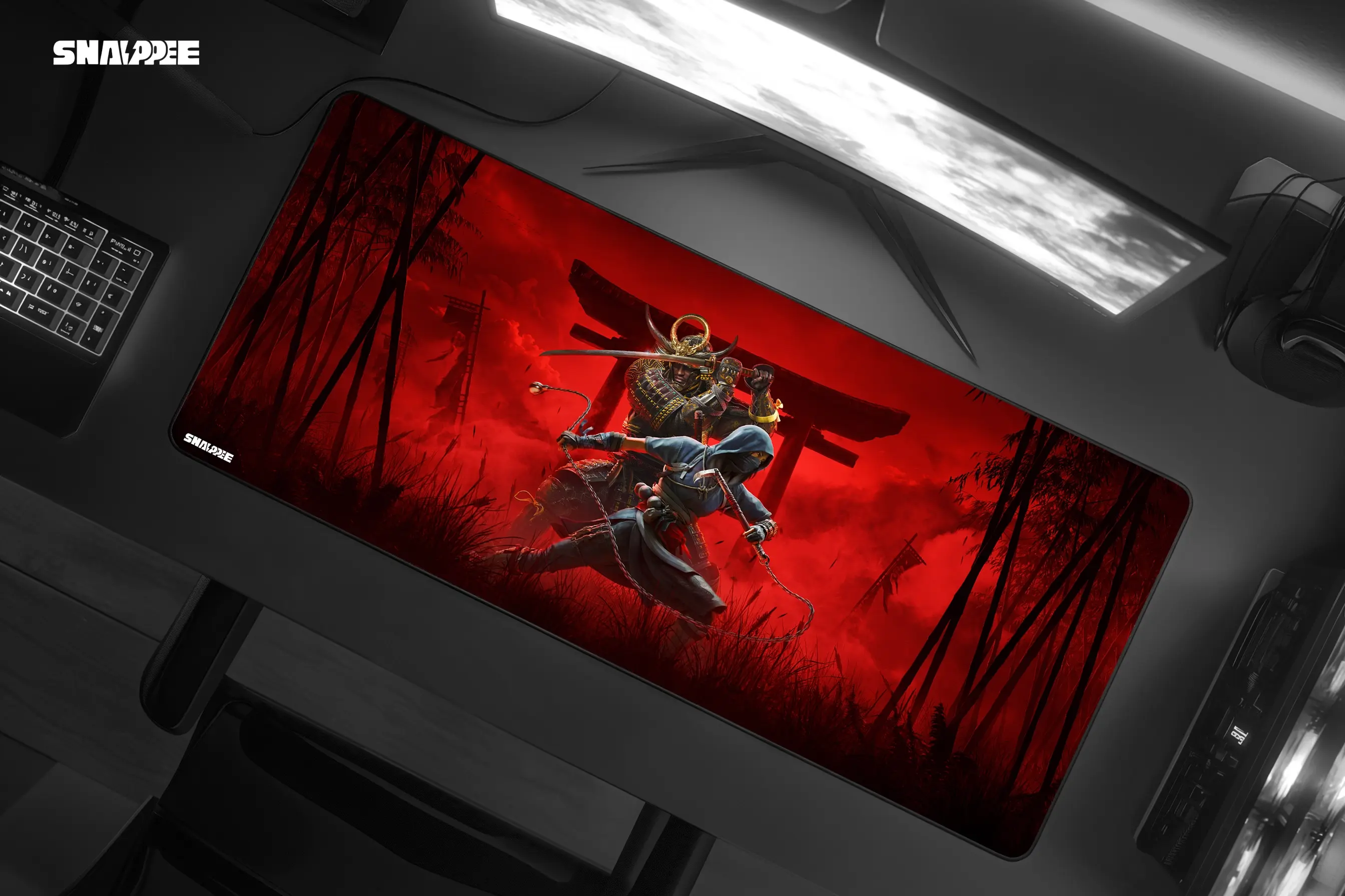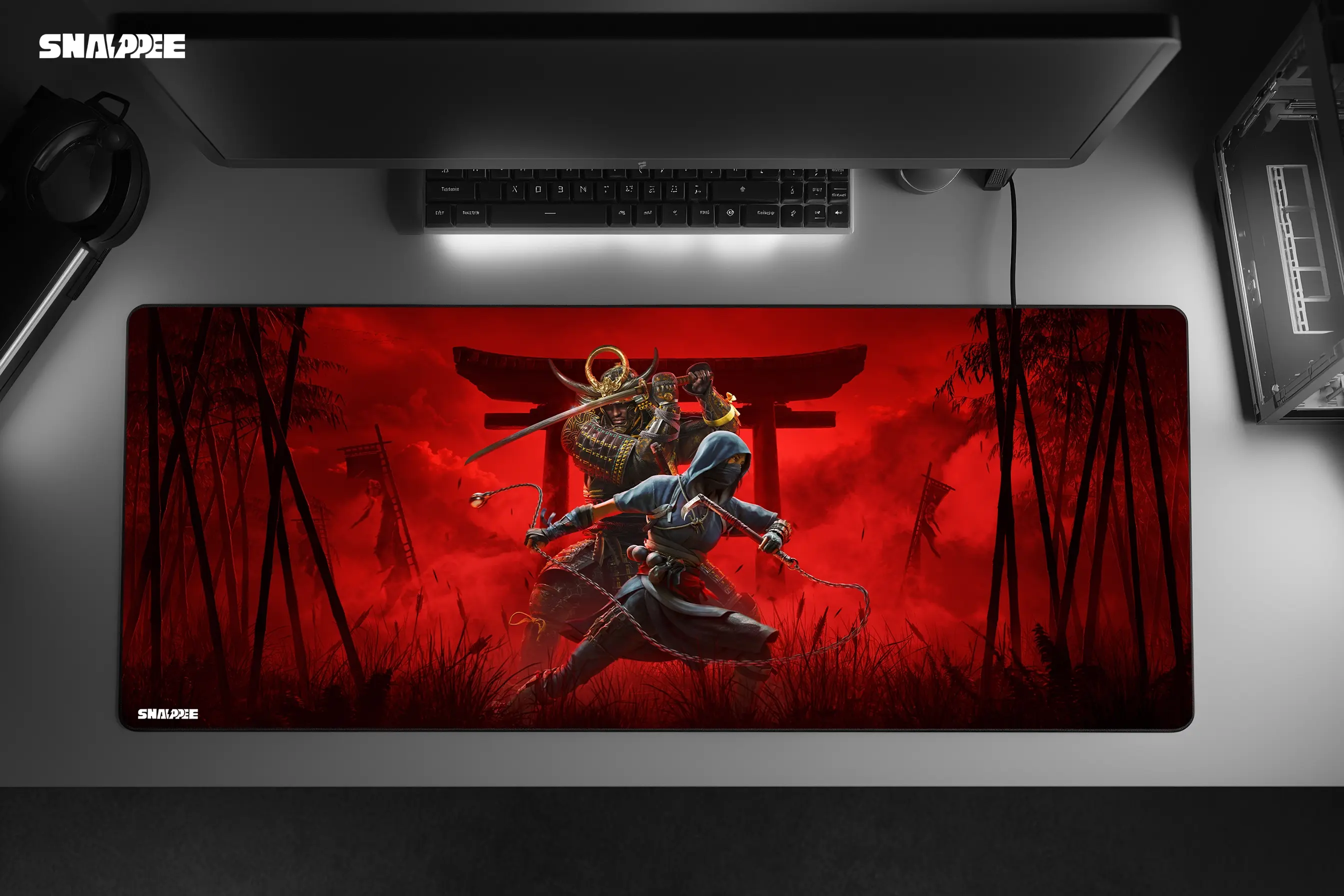 🎨 Exclusive Samurai Artwork: A dramatic duel between ninja and samurai set against a crimson sky and torii gate — bringing raw power and energy to your desk.