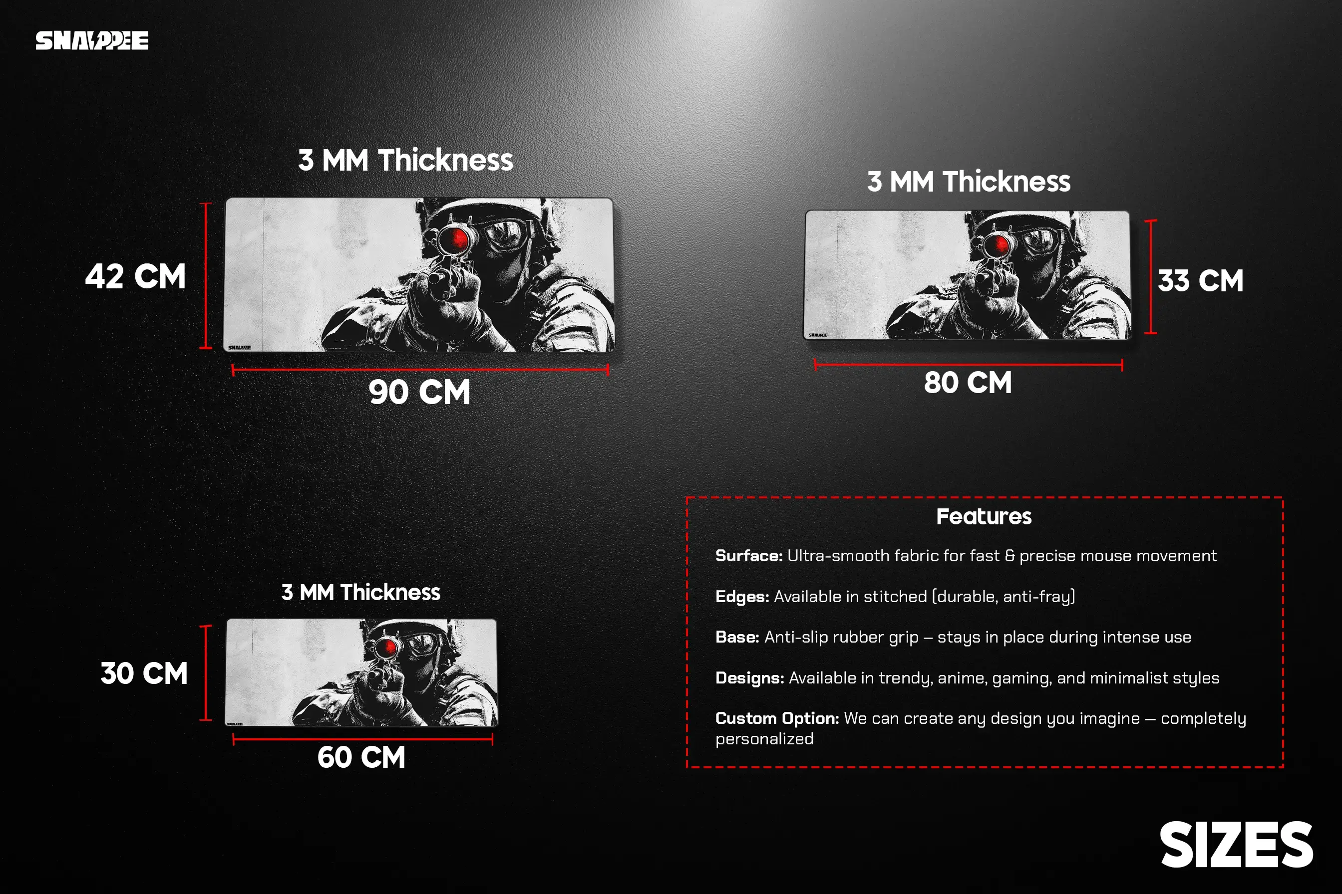 - 80 CM x 33 CM – Balanced and versatile for most setups.