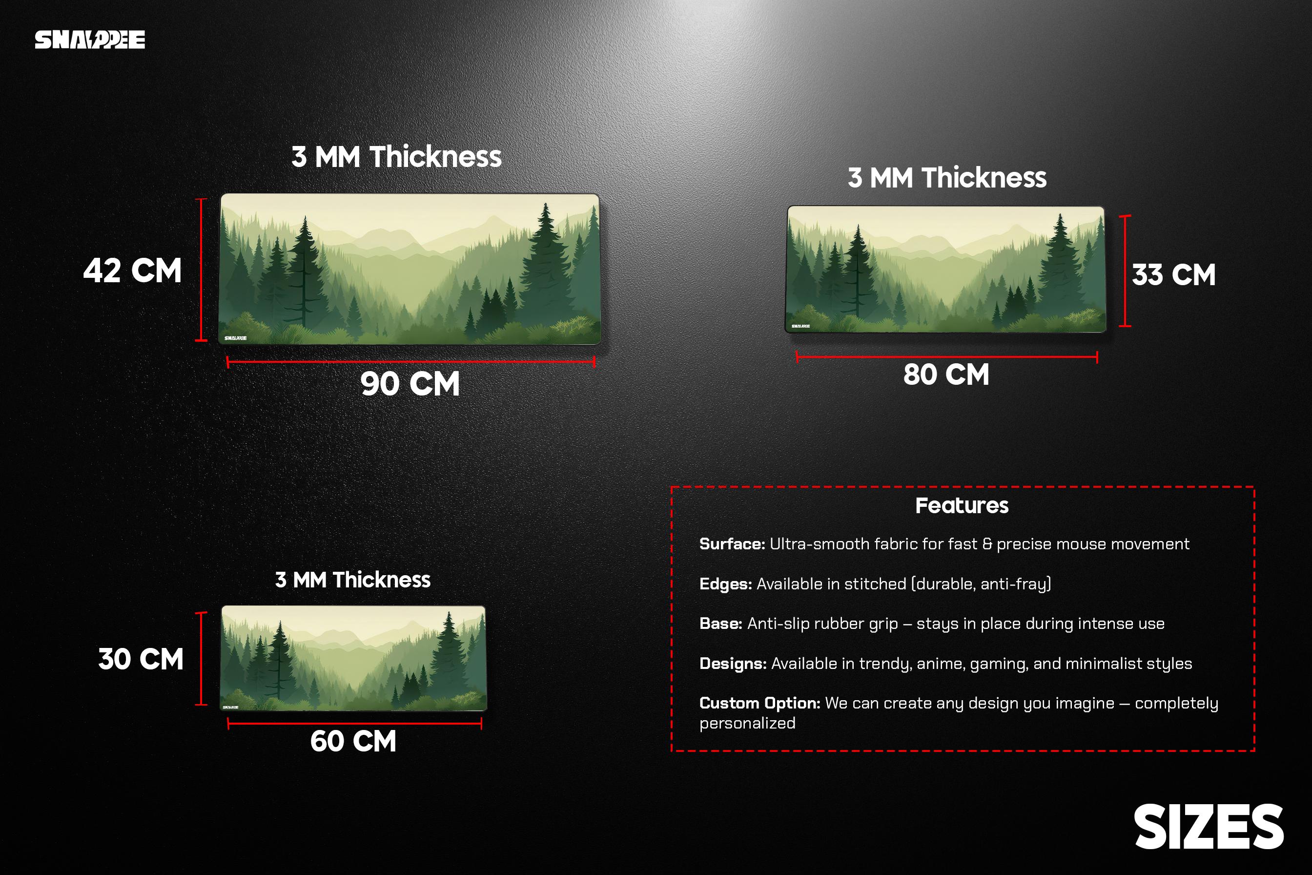 - 80 CM x 33 CM – Balanced and versatile for most setups.