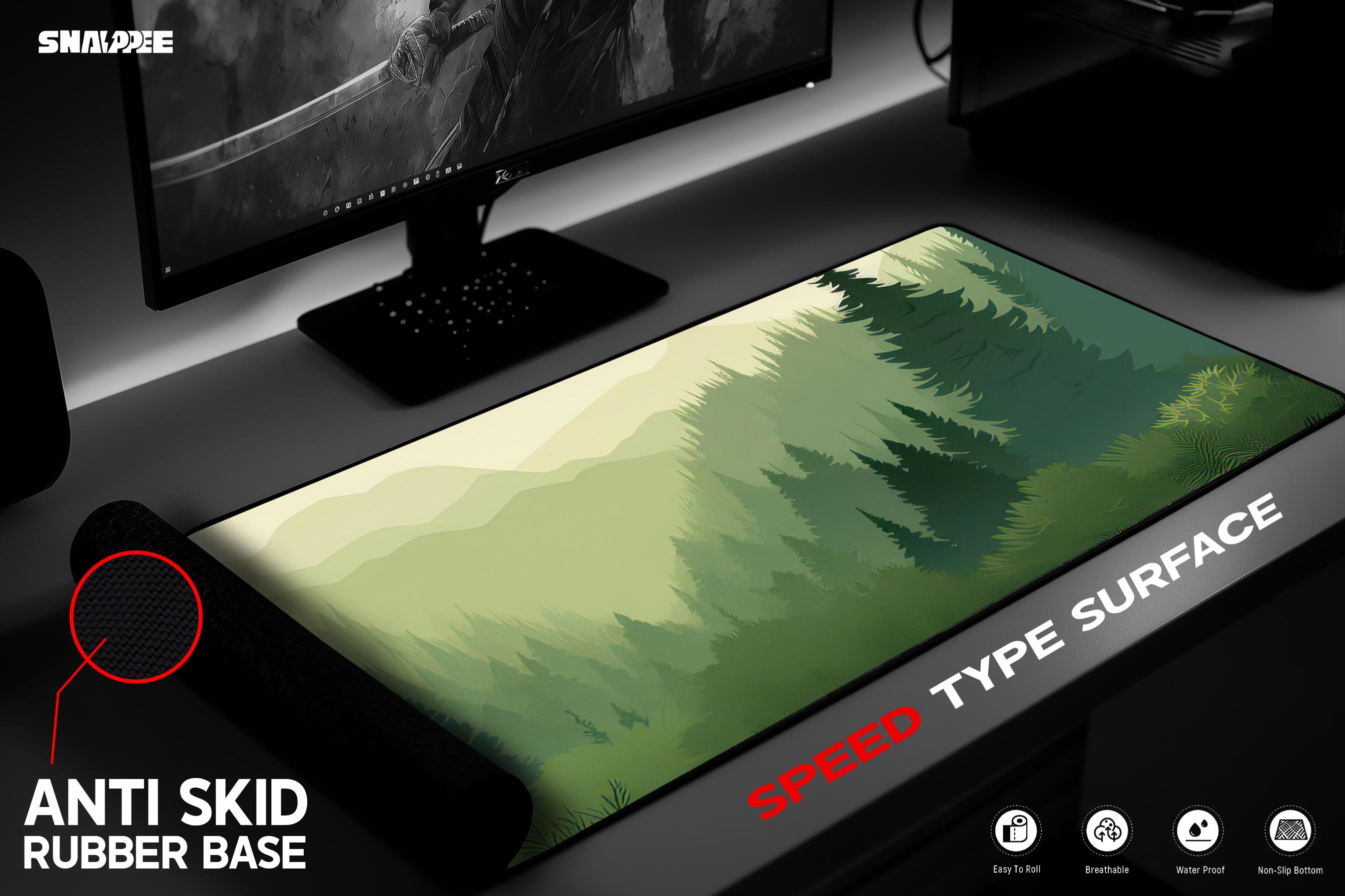 🎨 Exclusive Voldemort Design: A layered green forest and misty mountain artwork that brings peace, depth, and energy to your setup.