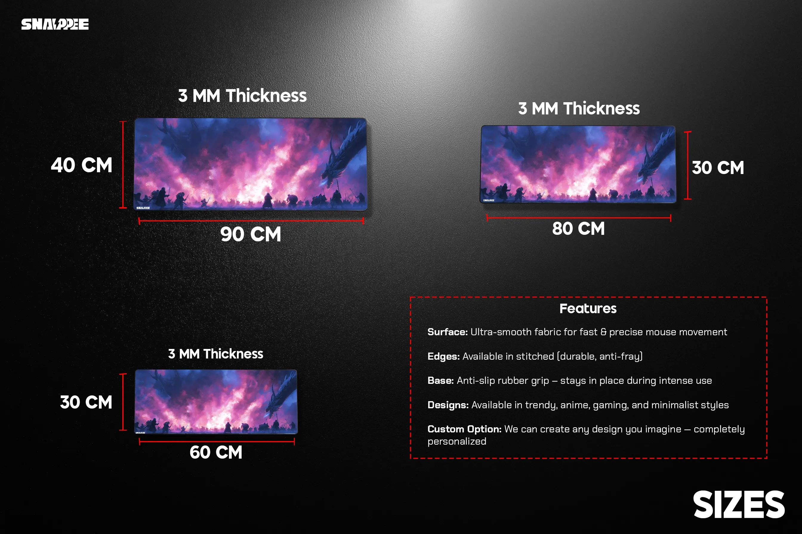 - 80 CM x 33 CM – Balanced and versatile for most setups.