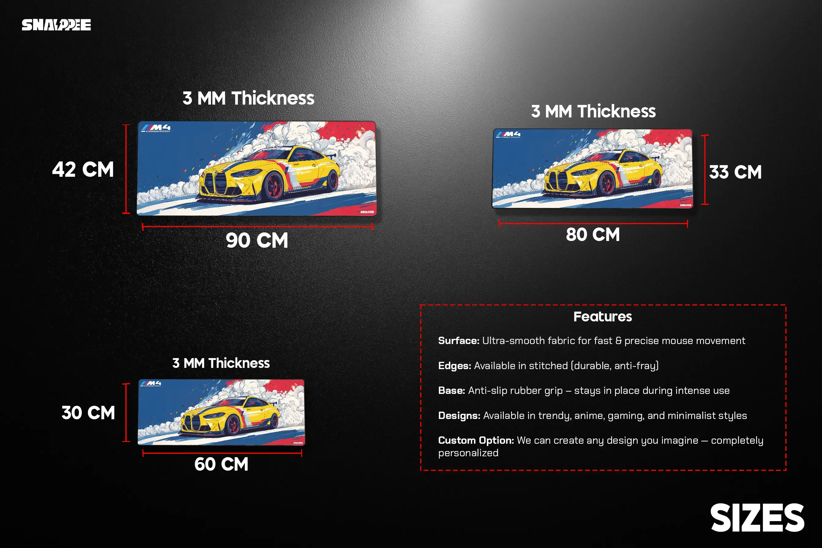 - 60 CM x 30 CM – Sleek and compact for smaller setups.