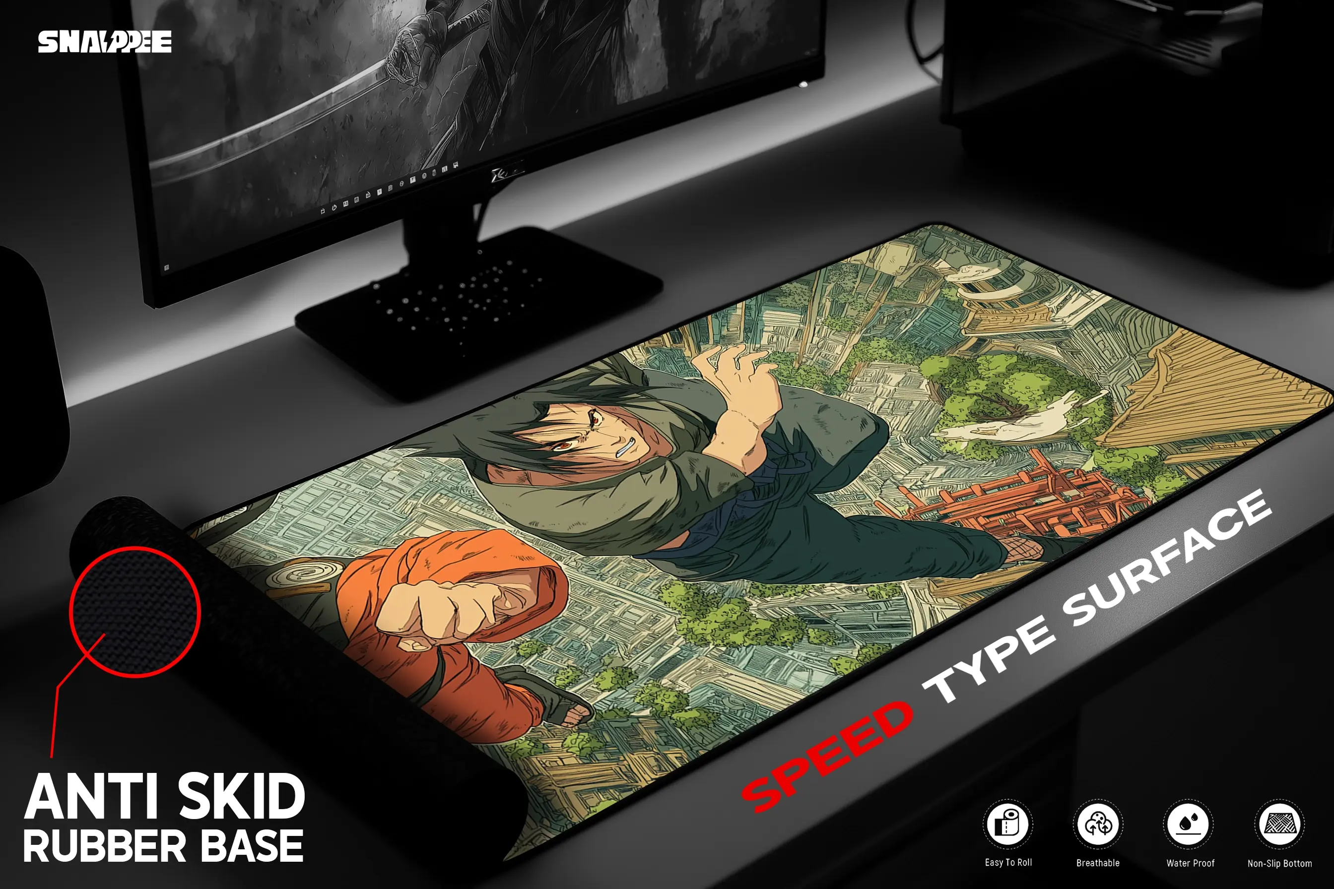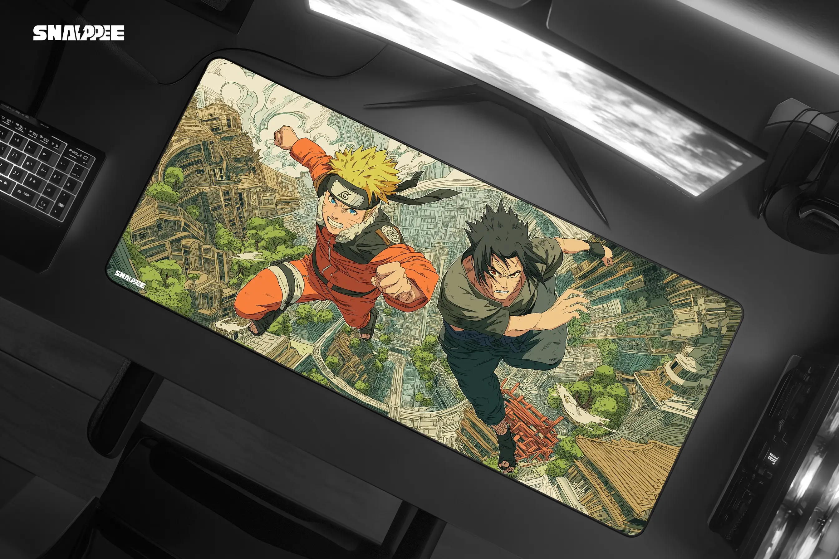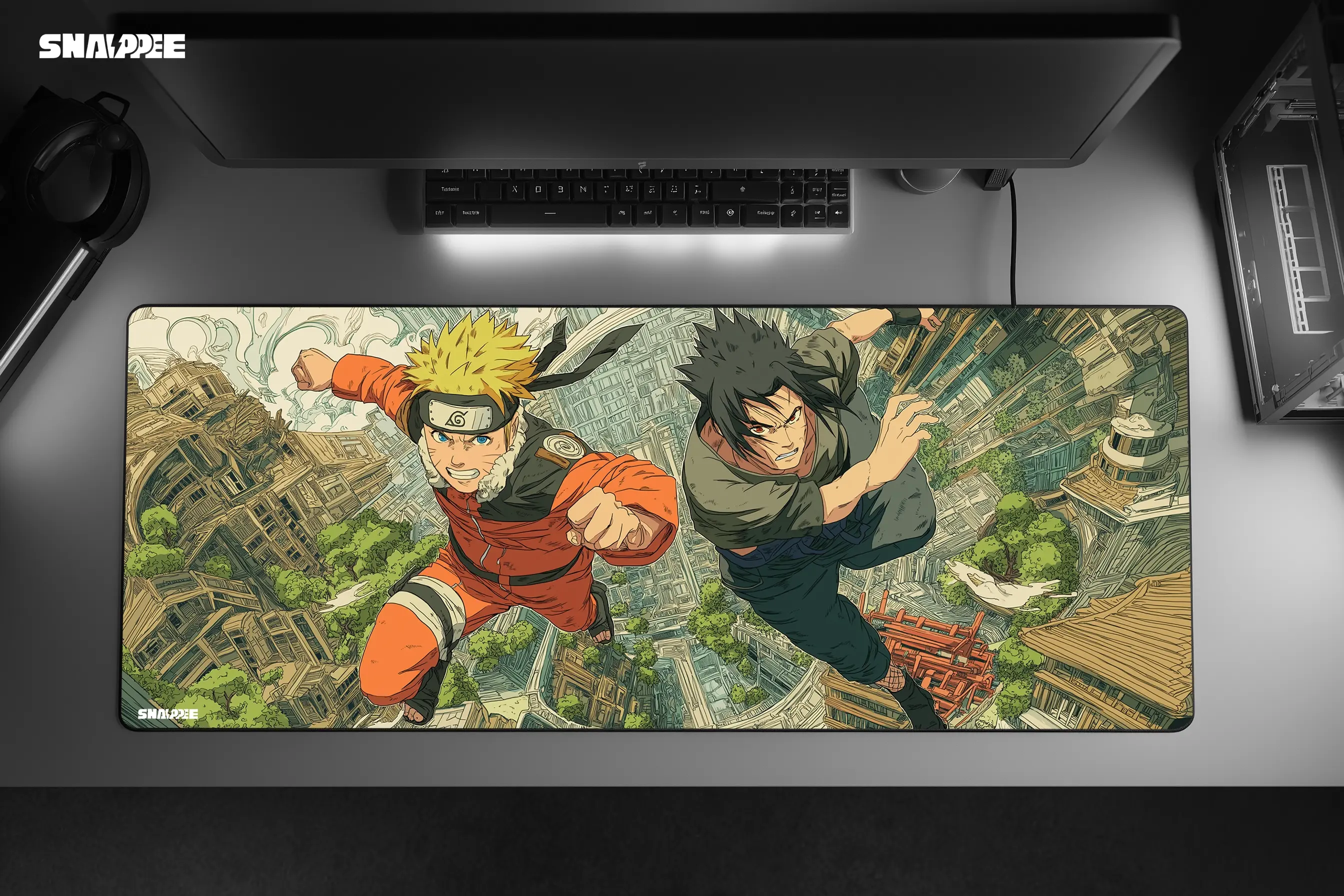 🎨 Exclusive naruto Artwork: A dynamic portrayal of Naruto and Sasuke in full motion, with intricate village detail and kinetic energy that brings your desk to life.