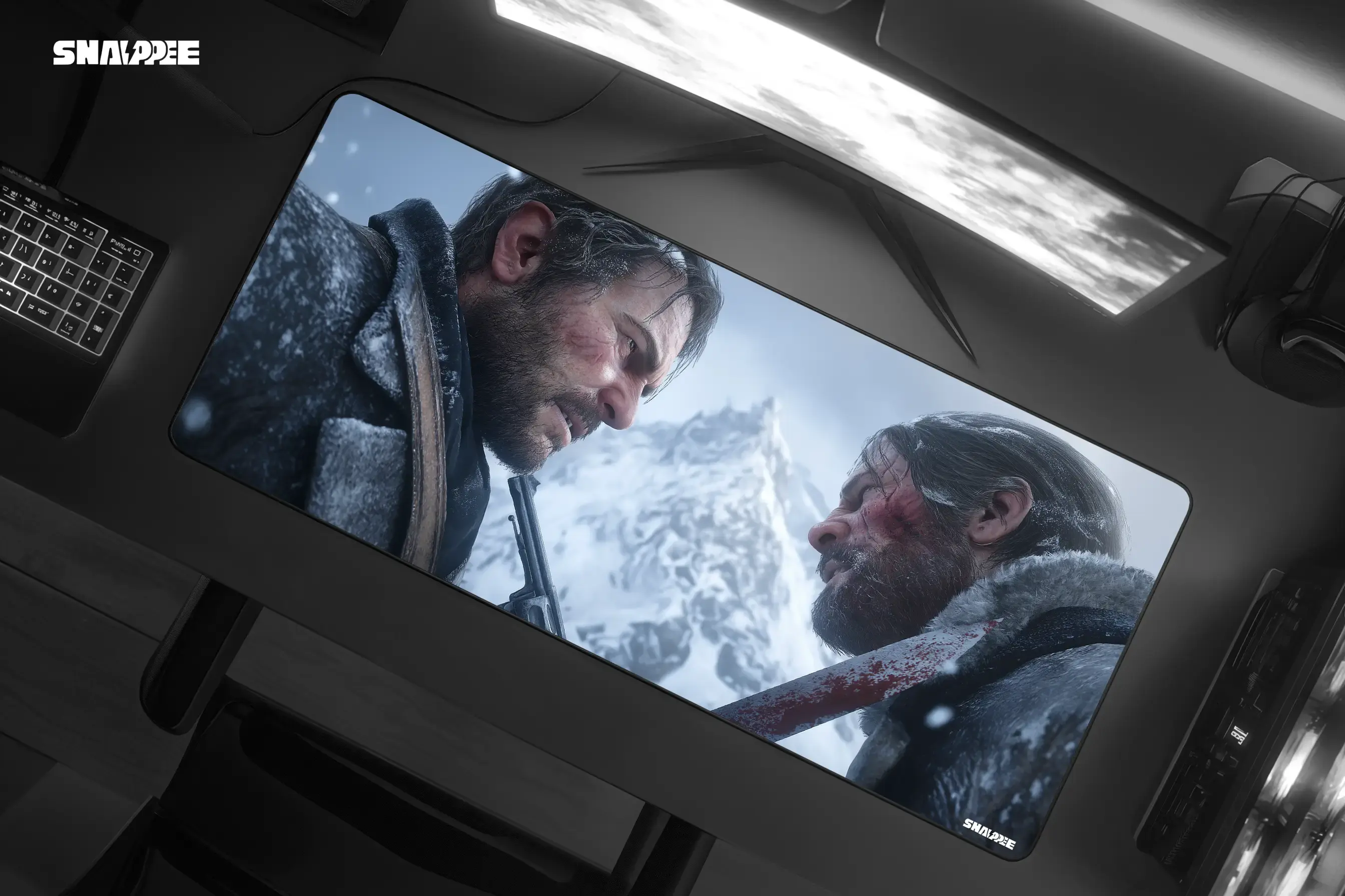 Face the frontier’s most legendary duel every time you sit at your desk with the OMG Customs RDR2 Showdown Gaming Mousepad. Featuring the iconic standoff between Arthur Morgan and Micah Bell in the snow-capped mountains, this mousepad captures the grit, tension, and raw emotion of Red Dead Redemption 2’s unforgettable climax.