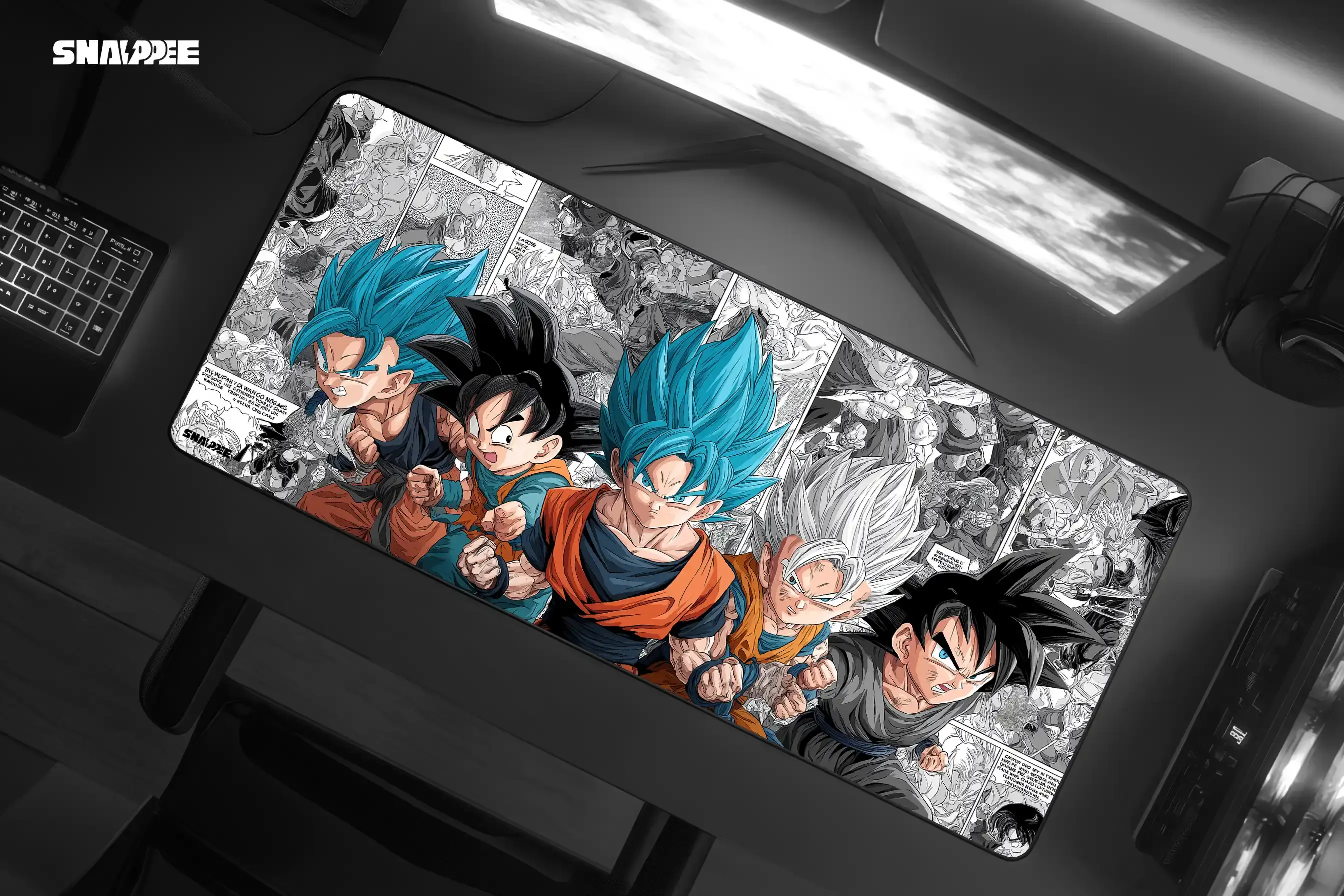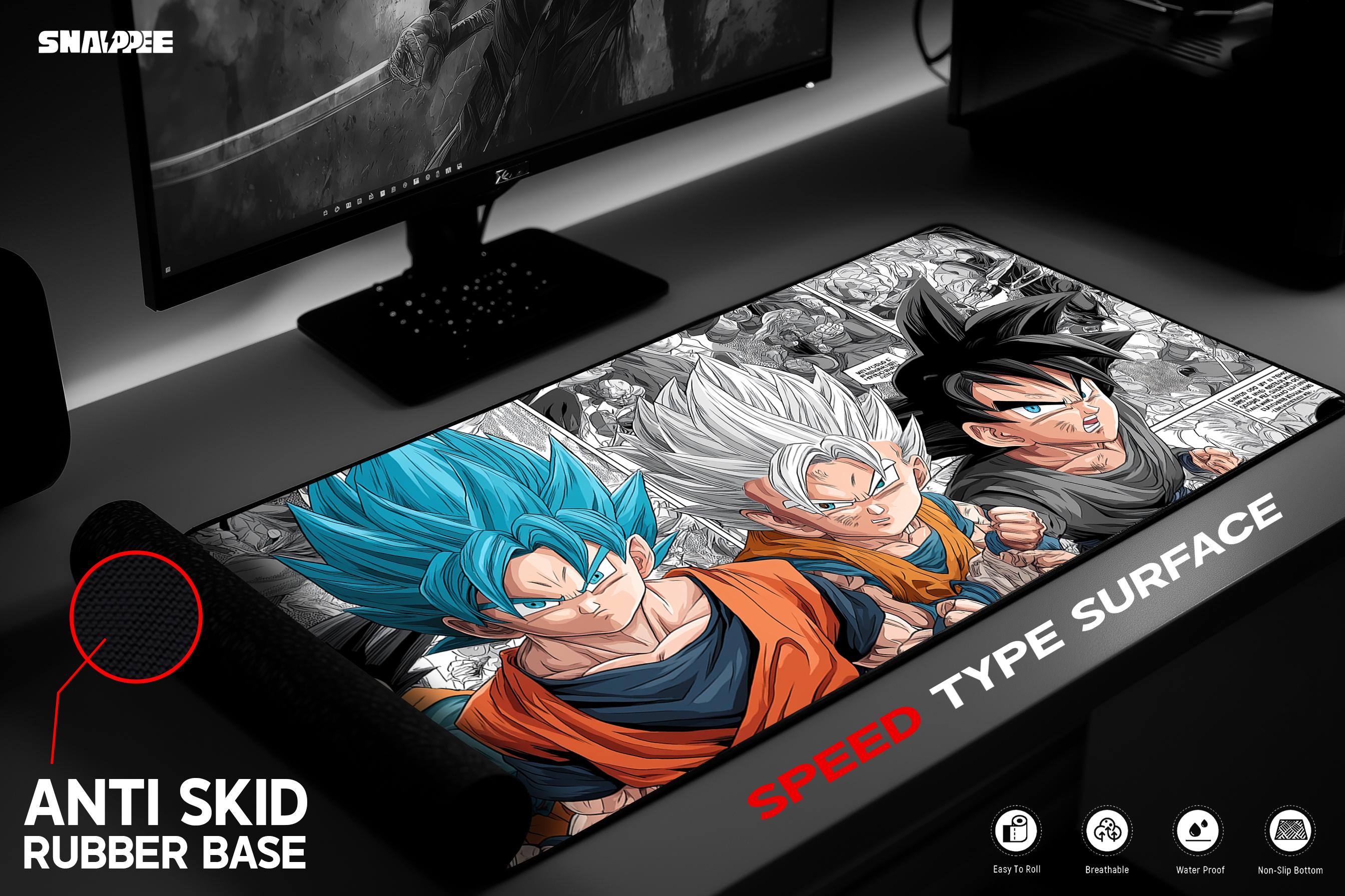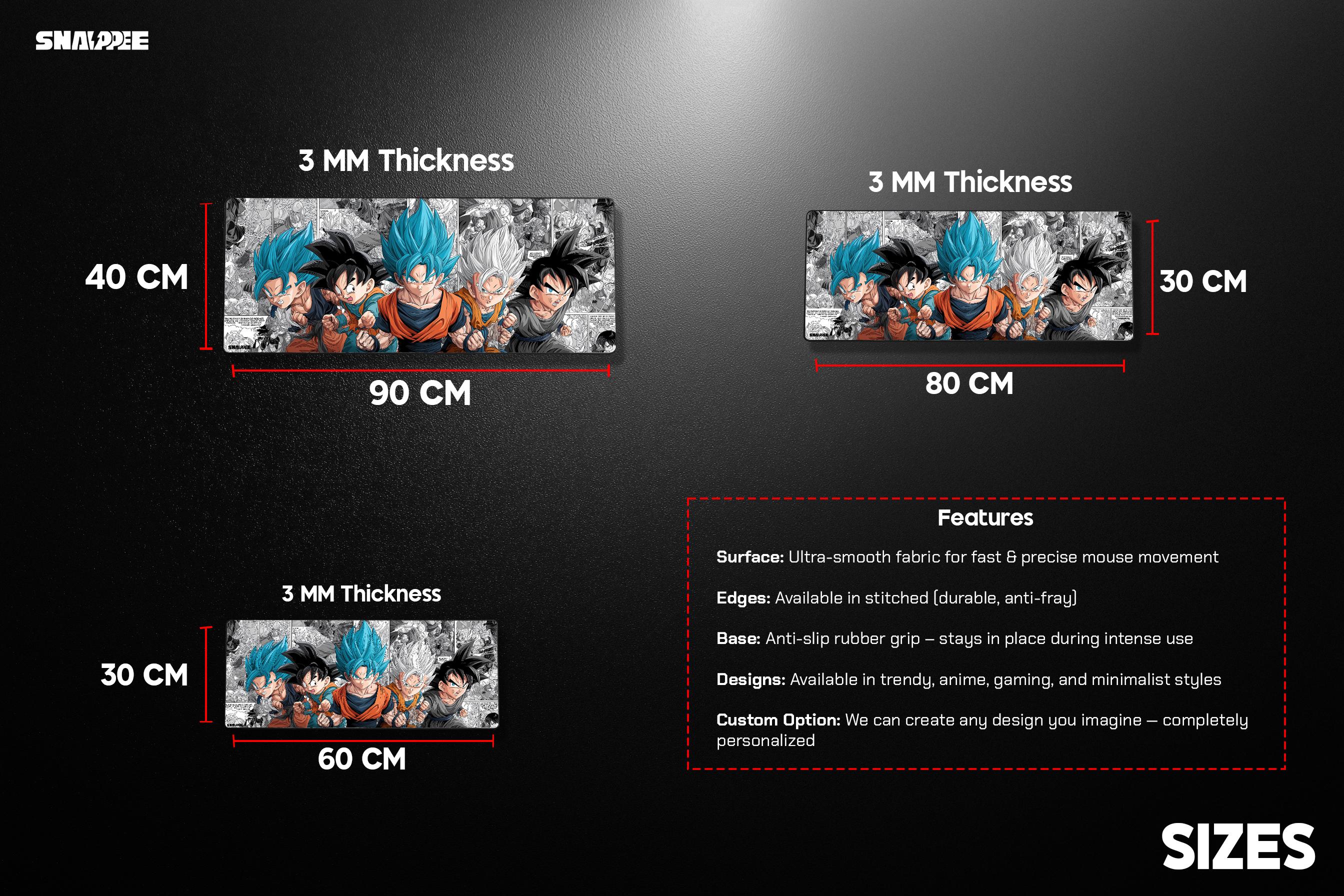 Unleash the power of generations! The OMG Customs Saiyan Legacy Gaming Mousepad features an electrifying anime-inspired design showcasing iconic Saiyan warriors in their most powerful forms. With a striking mix of color and manga-style backgrounds, this mousepad transforms your setup into a battlefield of legends. Built for gamers and anime lovers, it blends epic style with top-tier performance for every session.