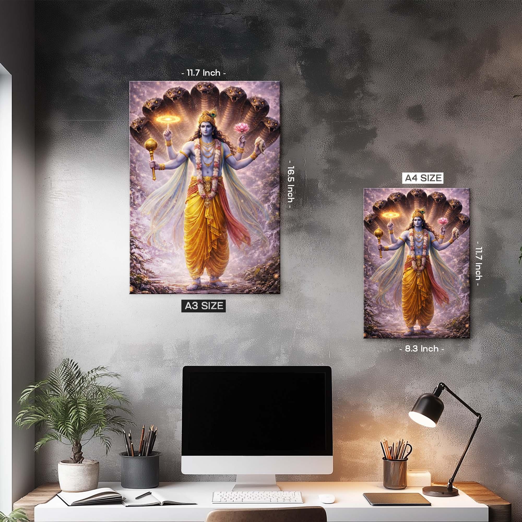 Invite the presence of the Supreme Preserver into your space with the Sheshashayi Vishnu – Protector of the Cosmos Metal Poster, and let divine balance, protection, and peace reign eternally in your life.