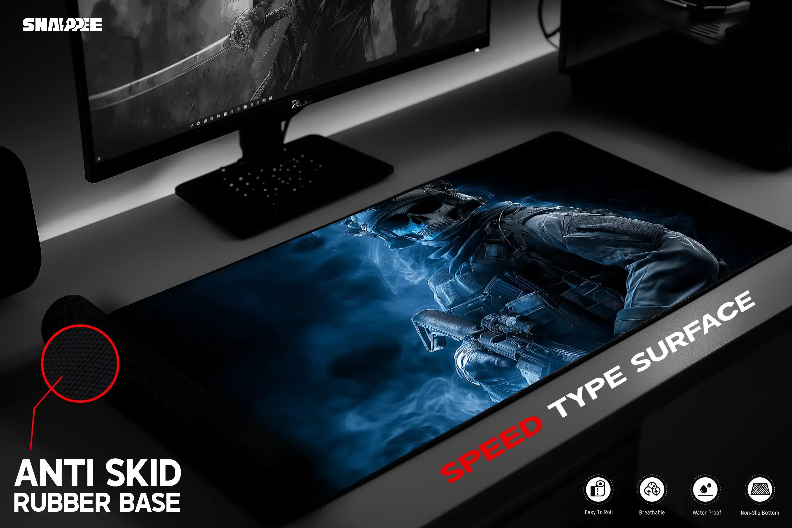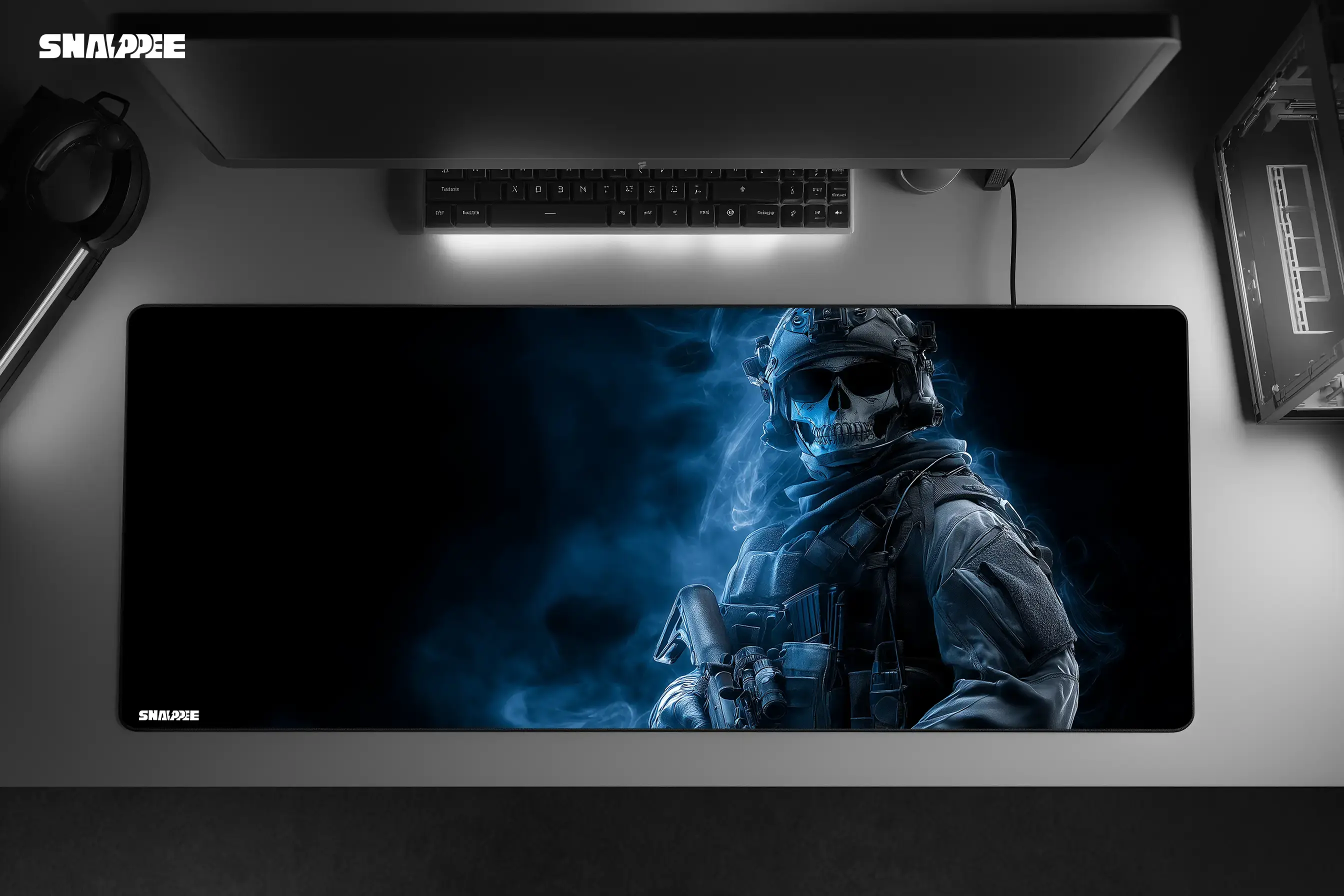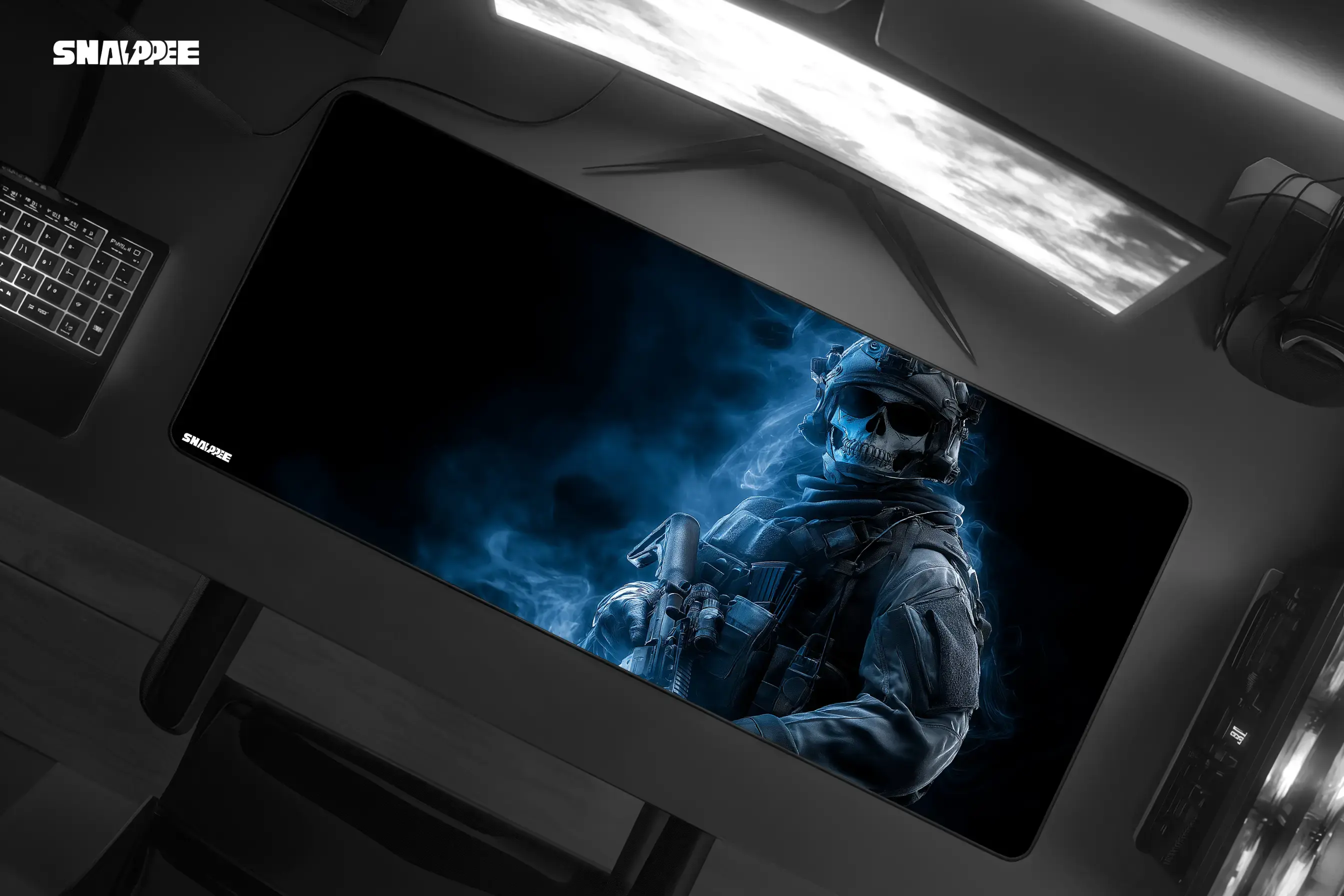 Command the shadows with the OMG Customs Silent Ghost Gaming Mousepad. Featuring a haunting skull-soldier surrounded by a chilling blue aura, this design embodies precision, power, and stealth. Engineered for gamers who dominate in silence, it fuses high-performance with a bold, battle-ready look.