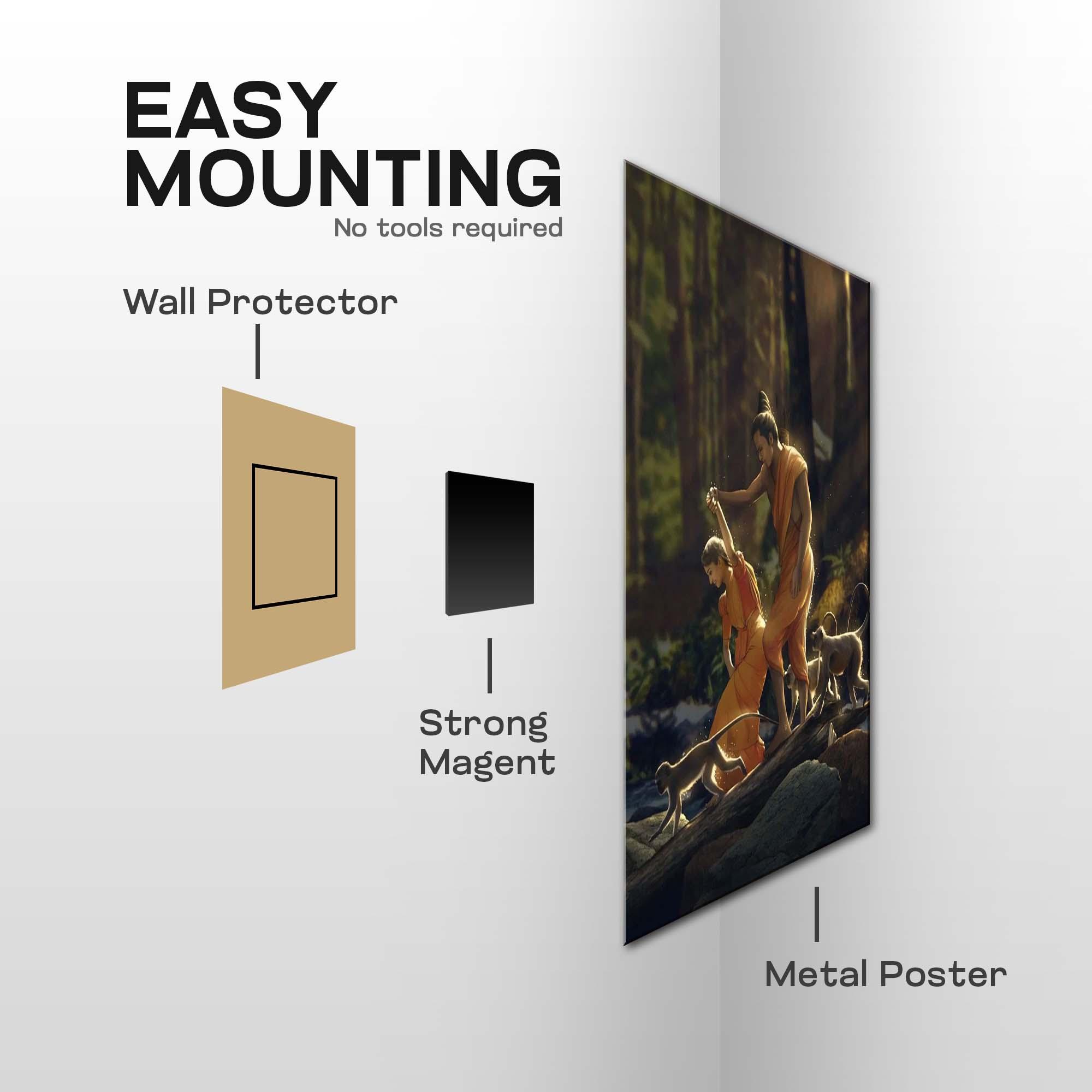 Shri Ram, calm and resolute, gently guides Maa Sita across the rugged forest path—His hand extended not as a ruler, but as a protector, companion, and embodiment of dharma. Maa Sita, radiant in simplicity, walks with unwavering faith, her grace illuminating even the wilds of nature. Around them, forest beings move freely and fearlessly, symbolizing that where Ram and Sita walk, harmony follows.
