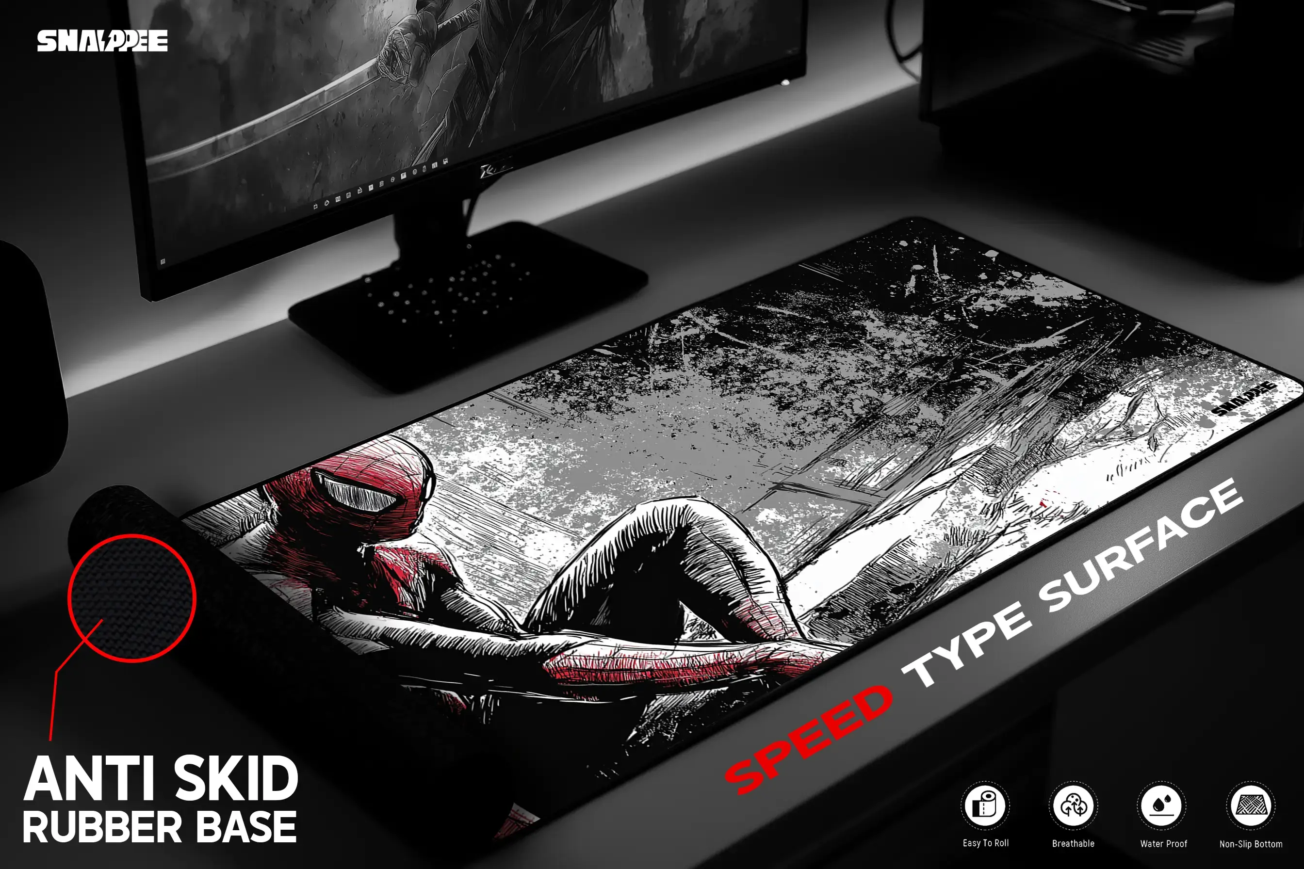 Embrace the struggle and strength of a true hero with the OMG Customs Web of Shadows Gaming Mousepad! Featuring an intense comic-style artwork of Spider-Man in a reflective pose, this design captures his resilience, determination, and the weight of responsibility. Perfect for Marvel fans and gamers, this mousepad blends striking art with performance-driven features to elevate your setup and inspire every move.