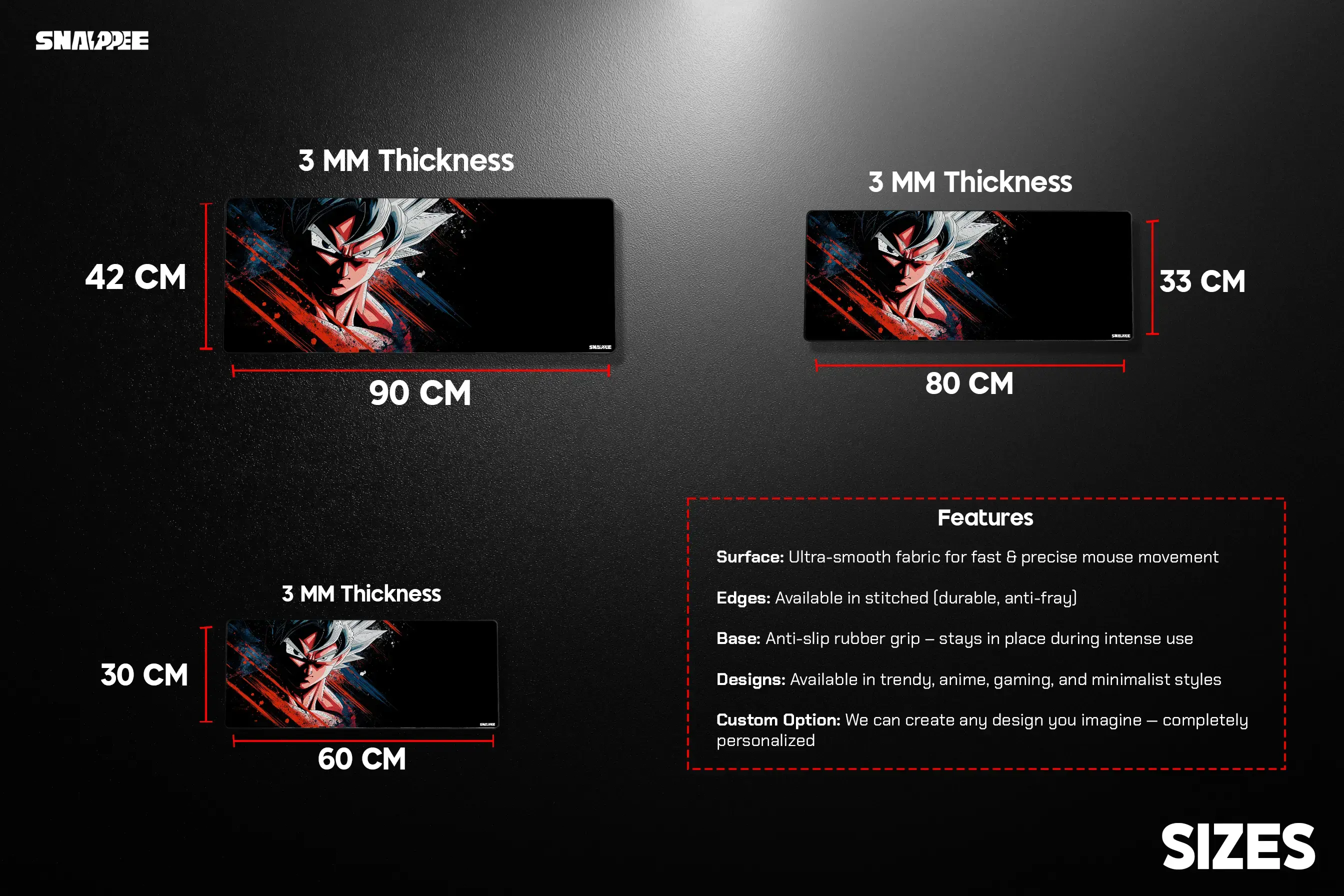 - 80 CM x 33 CM – Balanced and versatile for most setups.