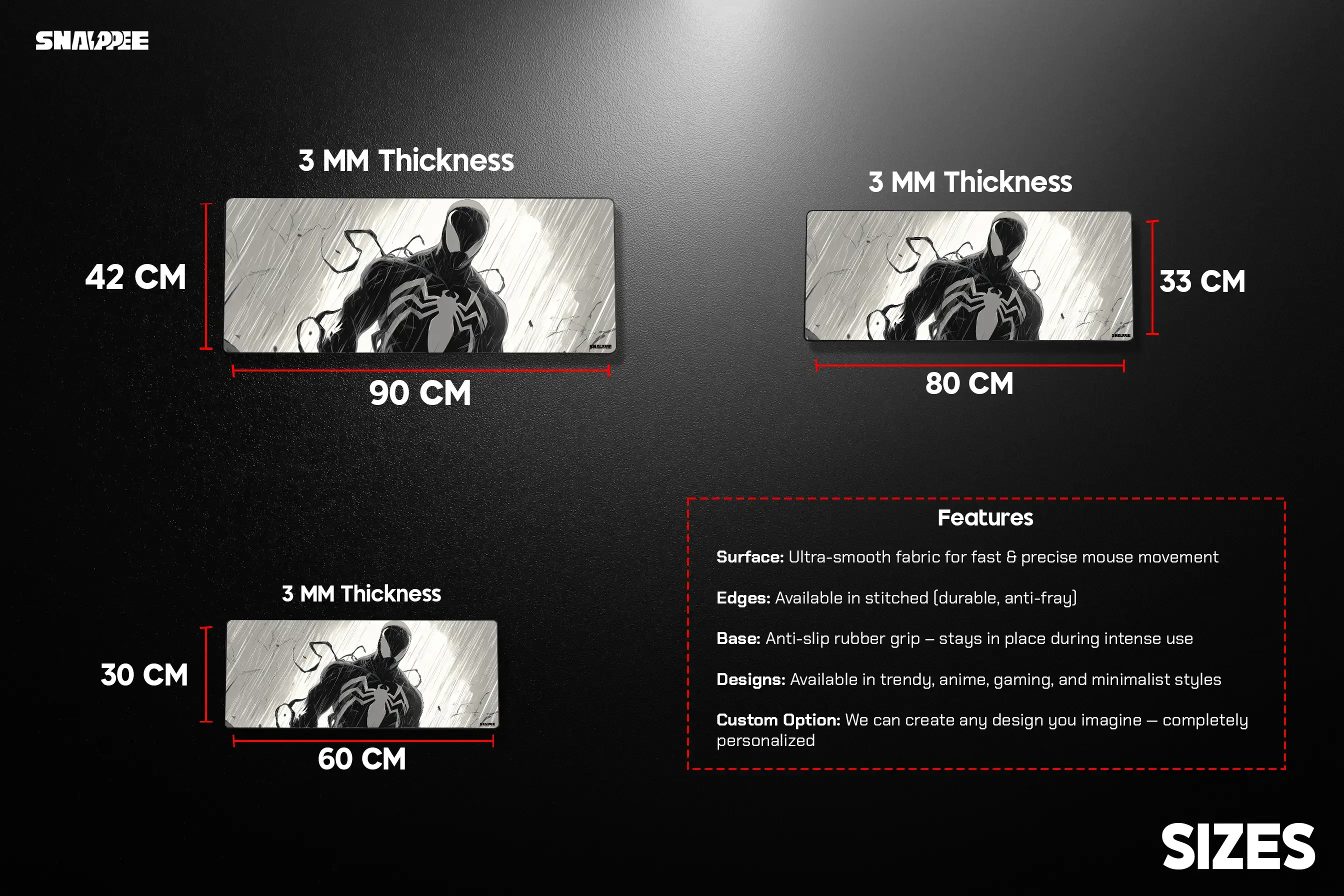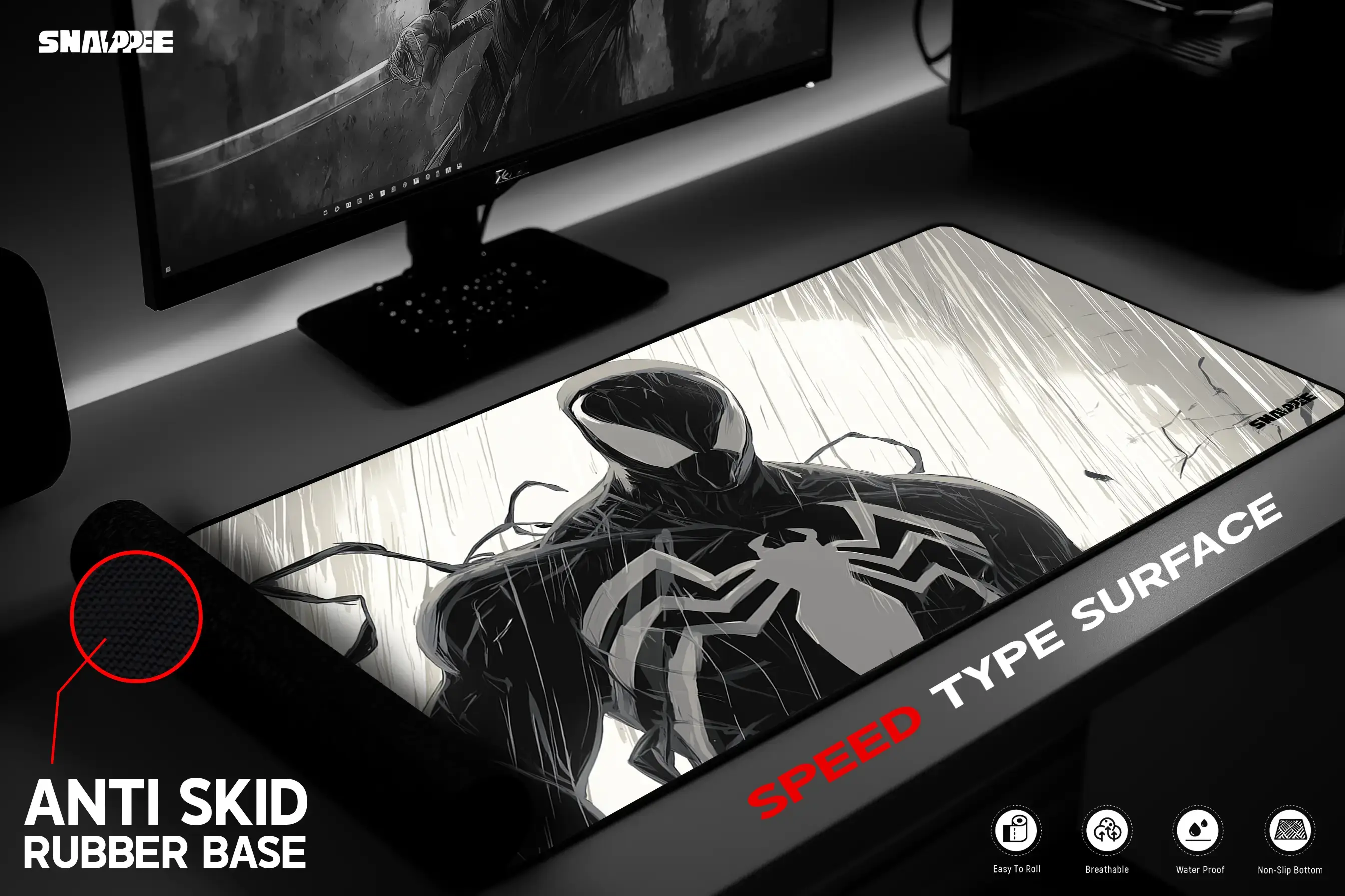 Channel the power of the symbiote with the OMG Customs Venom’s Vengeance Gaming Mousepad! Featuring a striking monochrome artwork of Venom standing strong in the rain, this design captures raw strength, chaos, and unstoppable energy. Built for fans of dark heroes and intense gaming sessions, this mousepad blends bold art with pro-level performance to fuel your gameplay and creativity.