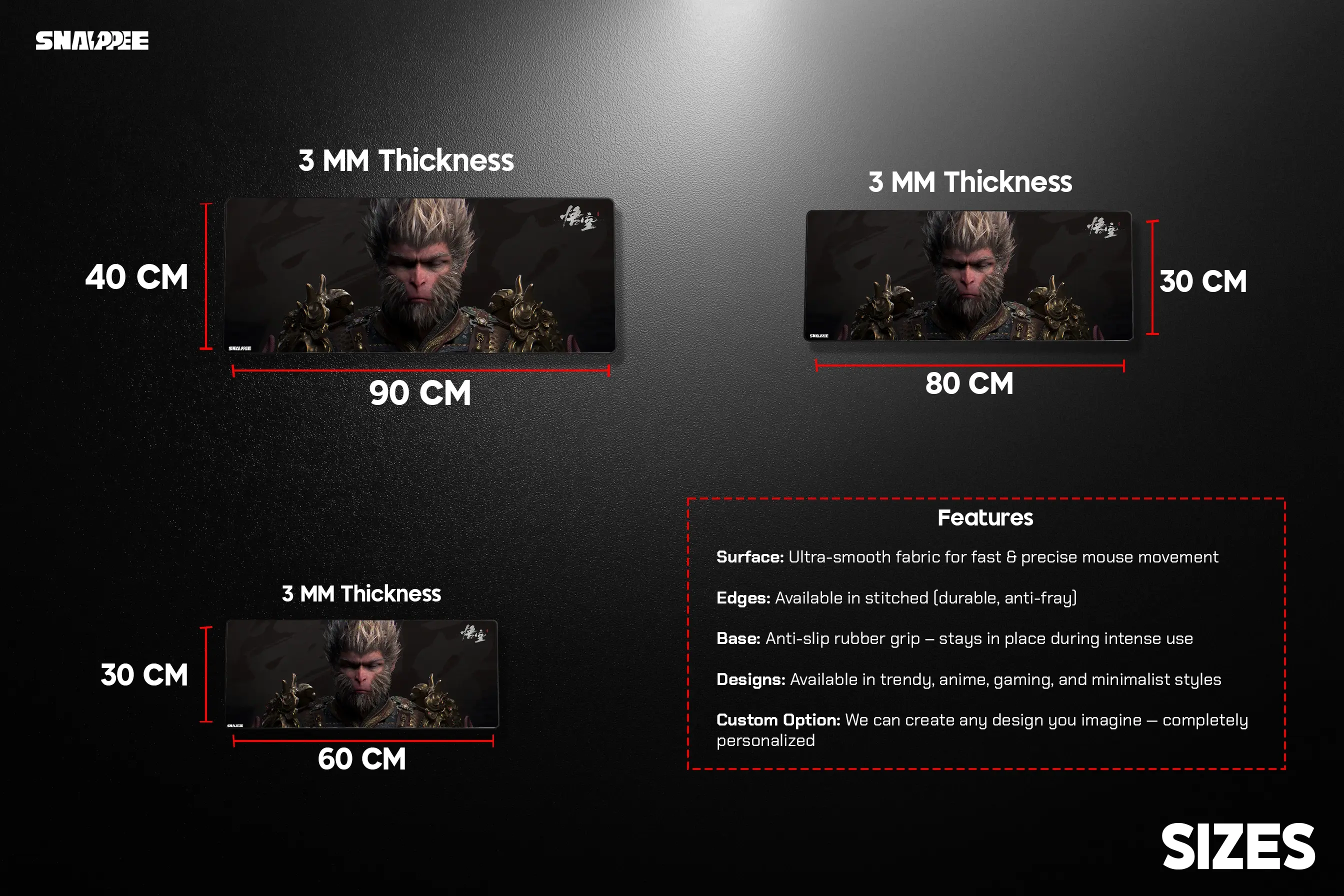 - 80 CM x 33 CM – Balanced and versatile for most setups.